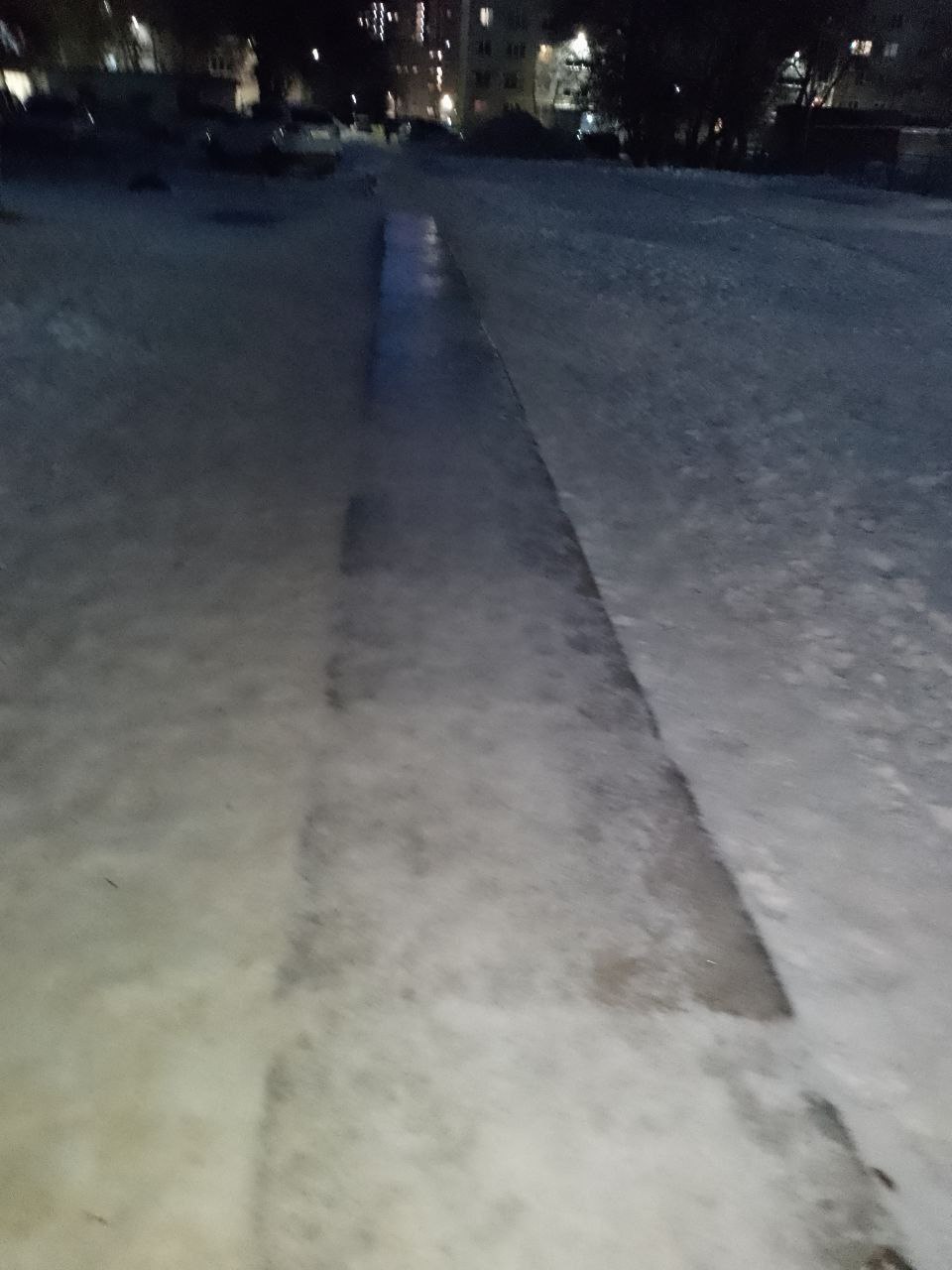 Дорога в школу №79 превратилась в каток, а дети регулярно ходят по ней в школу. При мне упало два ребёнка, очень скользко