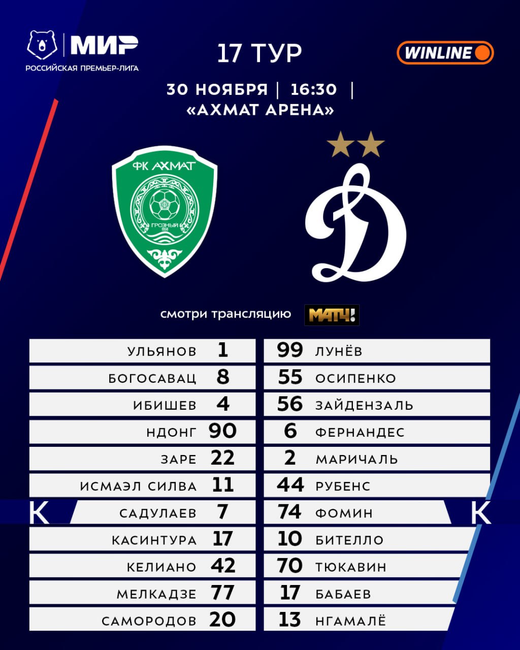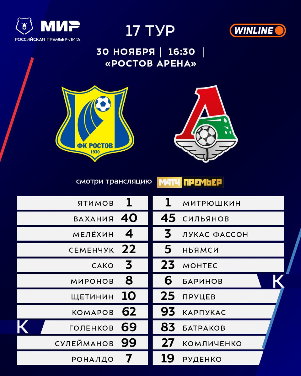 В 16:30 ловим двойную дозу #МирРПЛ: составы матчей в Ростове и Грозном перед вами ✅