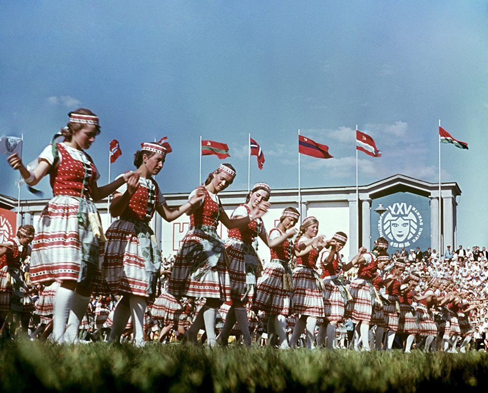 Танец литовских девушек в национальных костюмах, Литовская ССР, 1965 год