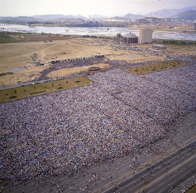 Проповедник Билли Грэм выступает перед 1,1 миллиона корейцев в Сеуле, 3 июня 1973 года.