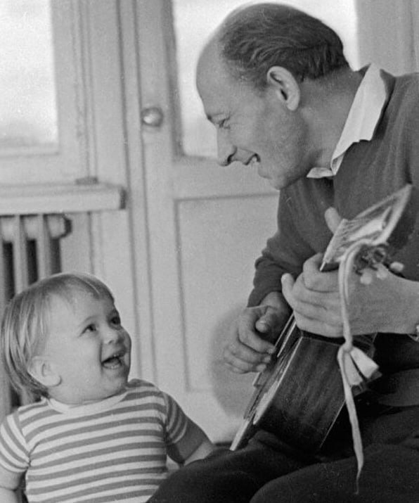 Евгений Евстигнеев с двухлетним сыном Денисом, 1964 год