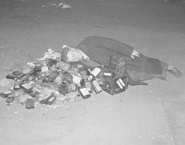 Мужчина отдыхает после празднования отмены сухого закона, США, 1933 г.