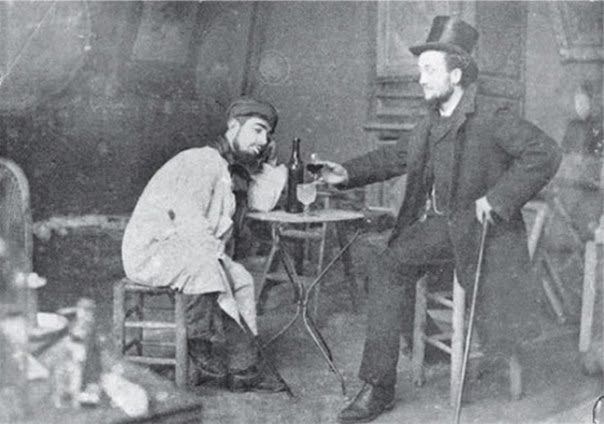 Анри Тулуз-Лотрек вместе со своим другом художником Люсьеном Метиве пьёт абсент. Париж, 1885 год.