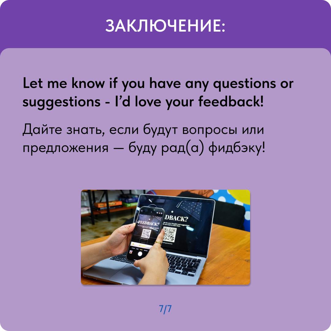 Let me know if you have any questions or suggestions — I’d love your feedback! — Дайте знать, если будут вопросы или предложения — буду рад(а) фидбэку!
