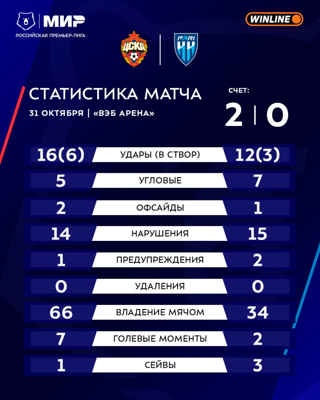 🏅🏅🏅🏅🏅🏅 Девять голевых моментов на двоих, превратились в два гола на одного — знакомимся со статистикой матча #ЦСКАПариНН