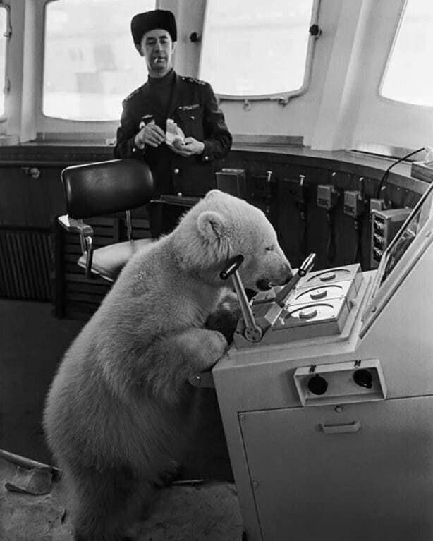 ![]() | /17269 Белый медведь на борту ледокола «Мурманск» во время экспедиции к Северному полюсу, 1961 год. [История](https://t.me/+s2icZy3Nm6o5MWEy) |
