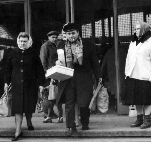 ![]() | NULL/3426 Евгений Леонов с покупками спускается по ступеням Усачёвского рынка. Москва, 1960-е |
