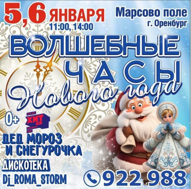 ![]() | https://t.me/orenburg_tg/63531 Интерактивная сказка «Волшебные часы нового года», DJ_ROMA_STORM, дискотека с Дедом Морозом и Снегурочкой и героями сказки! ✨ Новогодняя магия времени! Сказочное представление перенесет ребят в захватывающее путешествие, полное чудес и уроков о |