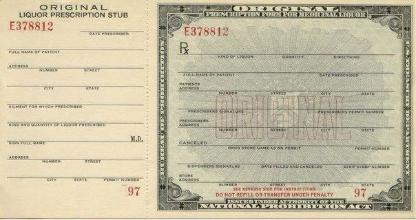 Торговля алкоголем под видом медицинских средств было одним из легальных способов обхода запрета на продажу спиртных напитков в США во время сухого закона. Алкоголь можно было приобрести в аптеке по рецепту врача.