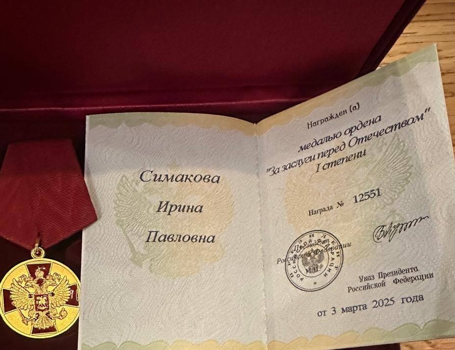 ![]() | https://t.me/orenburg_tg/59858 Тренеру центра спортивной подготовки Оренбургской области Ирине Симаковой вручена государственная награда — медаль «За заслуги перед Отечеством». Соответствующий указ подписал Президент России Владимир Путин весной этого года. Награду Ирине Павловне |