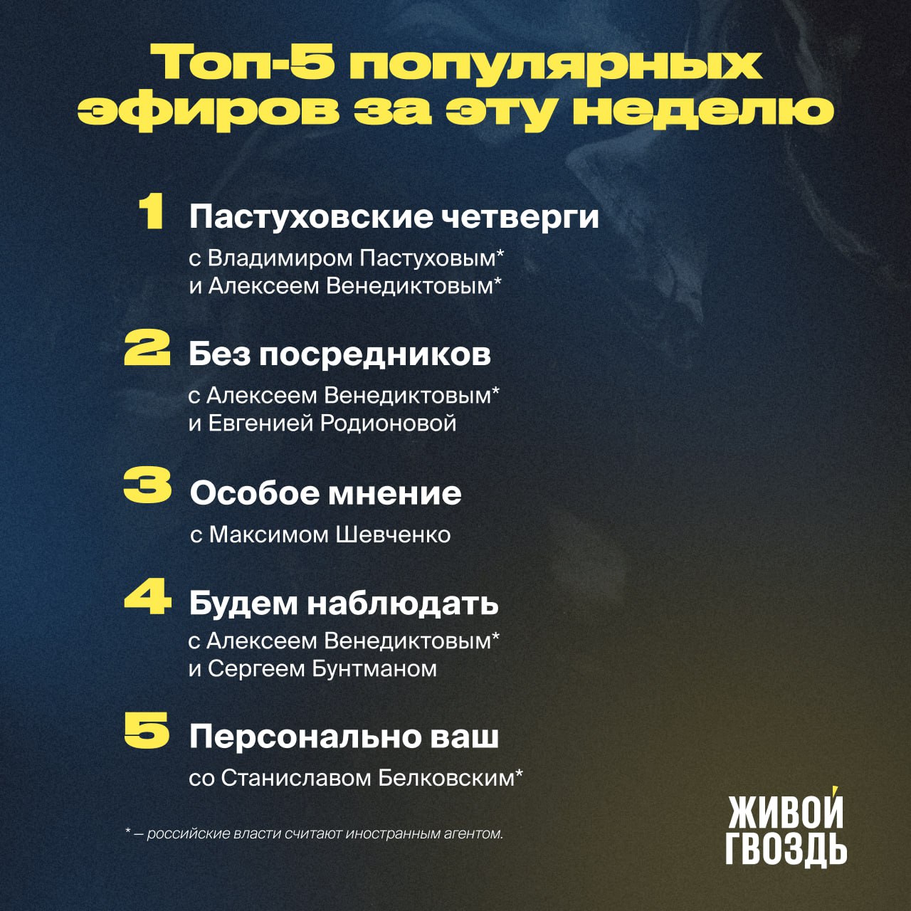 🏆**Топ-5 популярных эфиров на «Живом Гвозде» за эту неделю!**