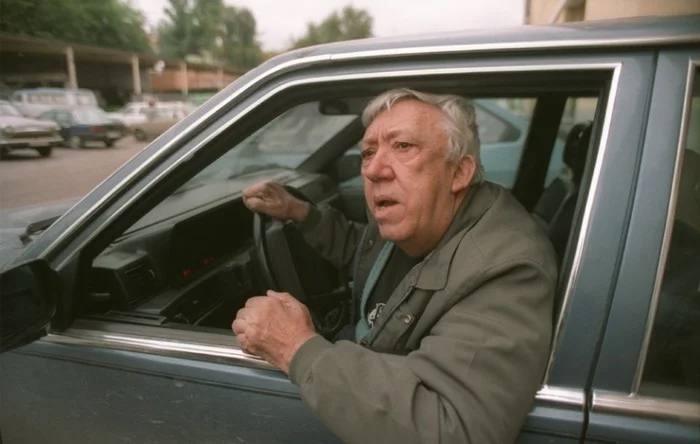 Юрий Никулин на своем «Volvo». Москва, 1990 год.