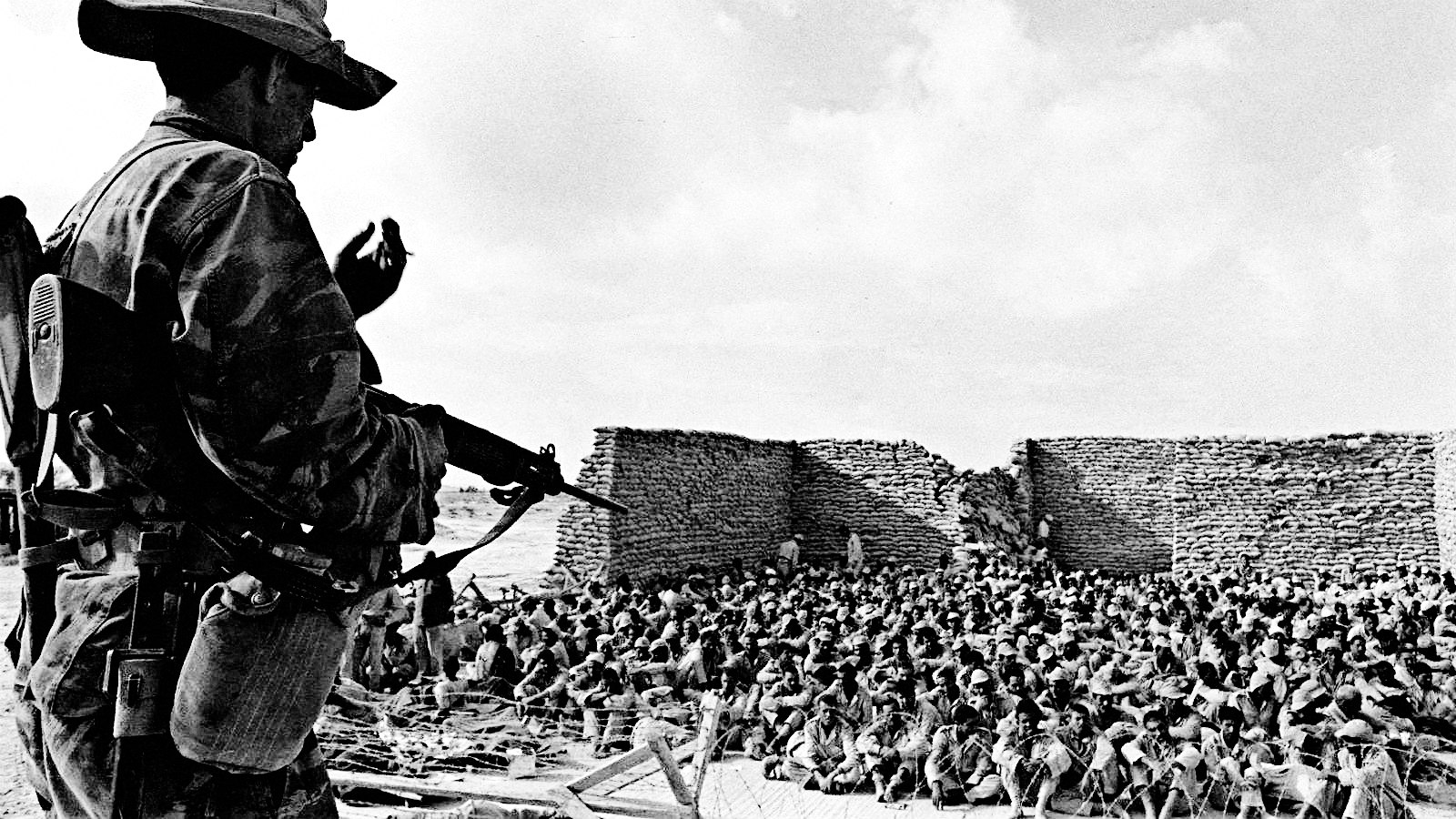 Израильский солдат охраняет пленных египтян после окончания боёв на Синайском полуострове, 1967 год.