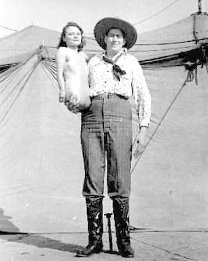 | NULL/15917 В 1949 году Томани, гигант ростом 8 футов и с размером обуви 22 дюйма, обосновался в Гибсонтоне, штат Флорида. Его жена, Джинни, известная как «Полу-девочка» из-за её двухфутового роста, усыновила двух дочерей вместе с мужем. Пара открыла ресторан и |