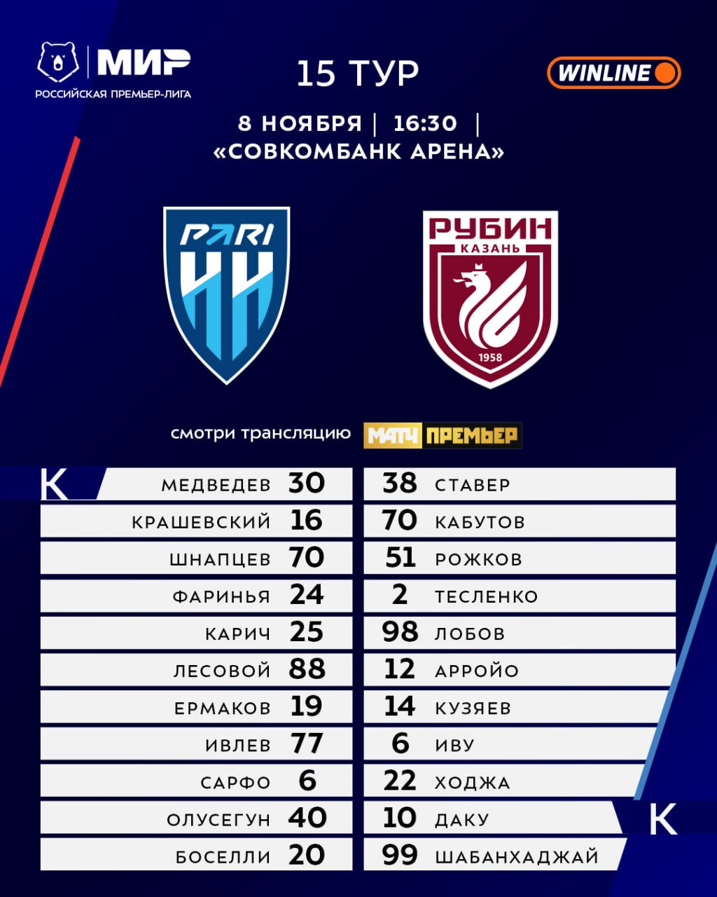![]() | https://t.me/premierliga/36645 Махачкала выставила на ЦСКА братьев Аззи, а в Нижнем противостояние Боселли и Даку — сразу две игры у нас по курсу ⛴ Ссылка на игру [«Динамо Мх» — ЦСКА](https://matchtv.ru/football/rpl/552400825-dinamo-tsska-08-11-2025) 📲 Ссылка на игру |
