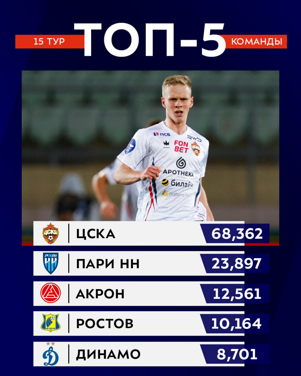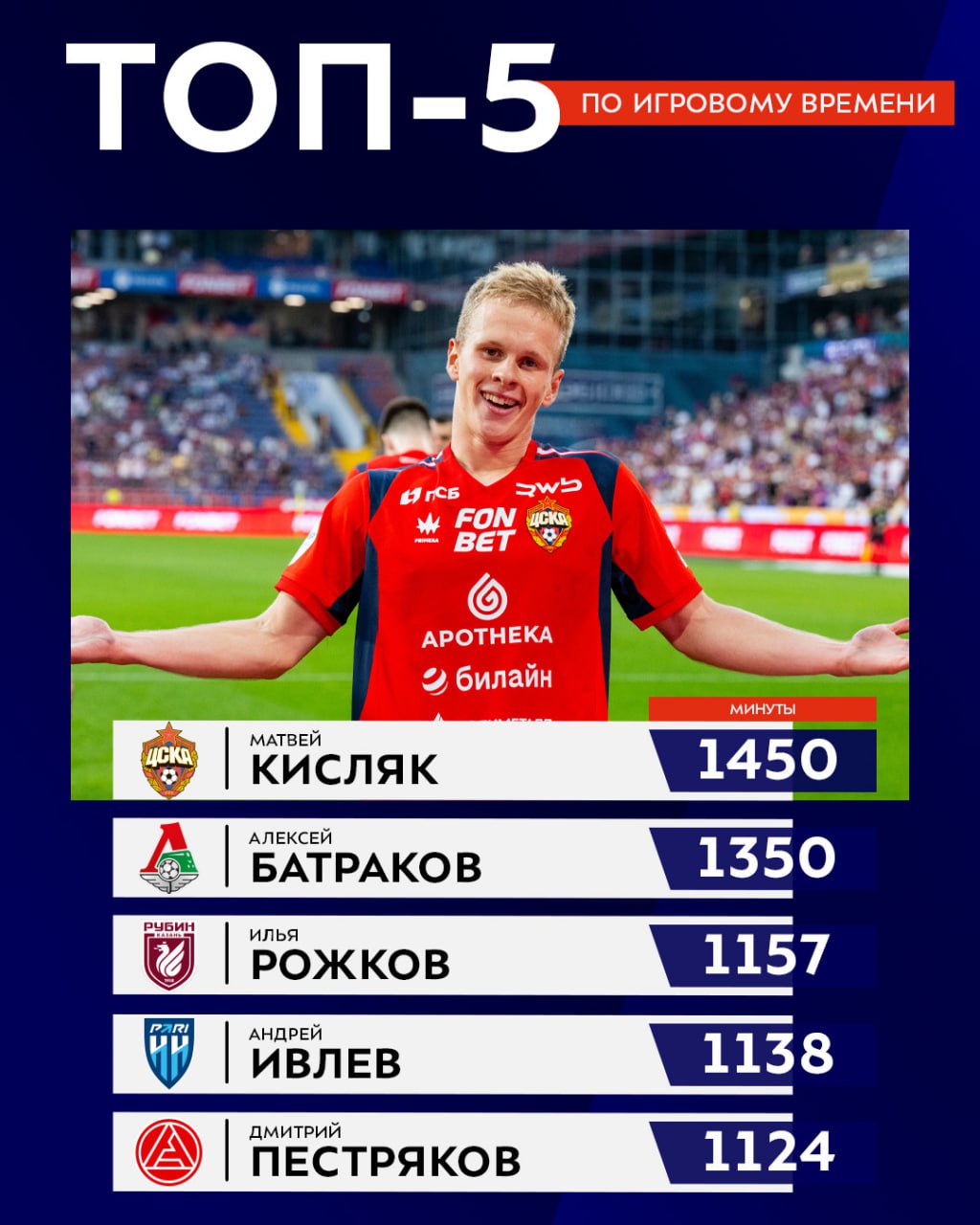 ![]() | https://t.me/premierliga/36814 Огромный отрыв ЦСКА и борьба Кисляка с Батраковым за лидерство в индивидуальном зачёте — смотрим индекс молодых футболистов за первый круг 🤓 Всего команды задействовали 64 молодых игрока и для 23 из них это дебютный сезон в Мир РПЛ. Армеец Кисляк и |