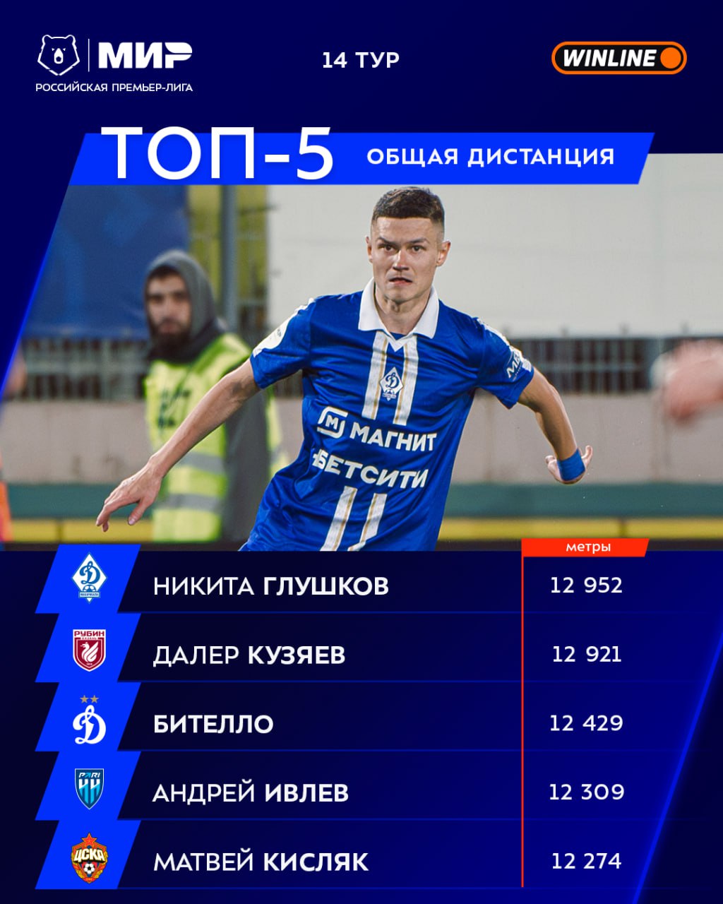 ![]() | https://t.me/premierliga/36559 **Никита Глушков** — лучший по преодолённой дистанции в 14-м туре #МирРПЛ Близок к Никите Далер Кузяев, остальная пятёрка также перед вами 🔝 |