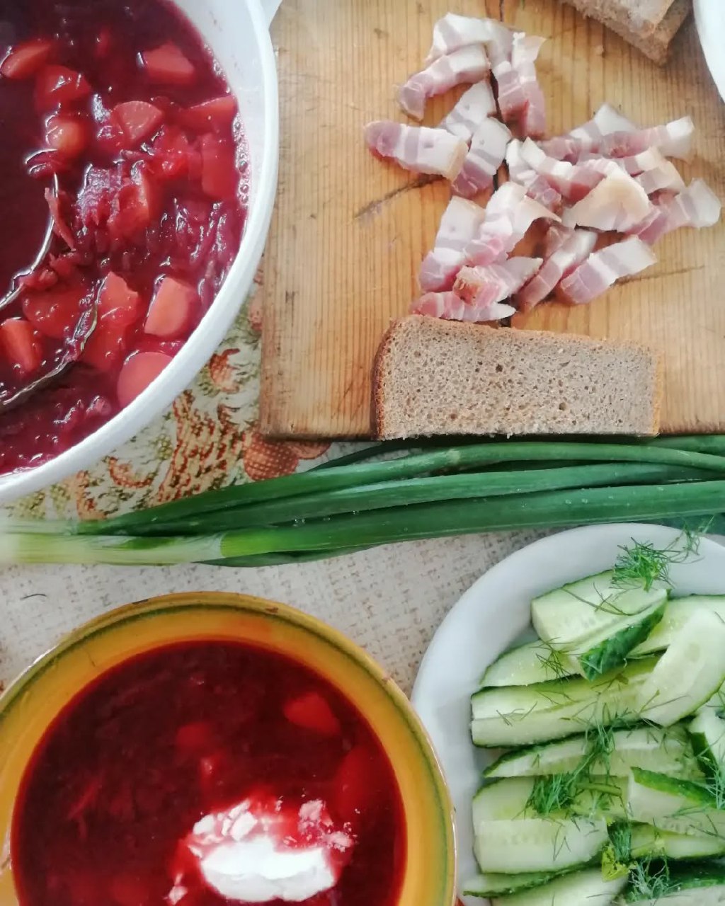 ![]() | NULL/27007 **Помню, бабушка в печке готовила борщ в чугунке, всегда добавляла маринованные томаты и сахар))** Мама отдельно в сковородке тушила свёклу и морковь с луком, а затем добавляла в мясной бульон. Я всегда готовила как мама. А когда познакомились с |