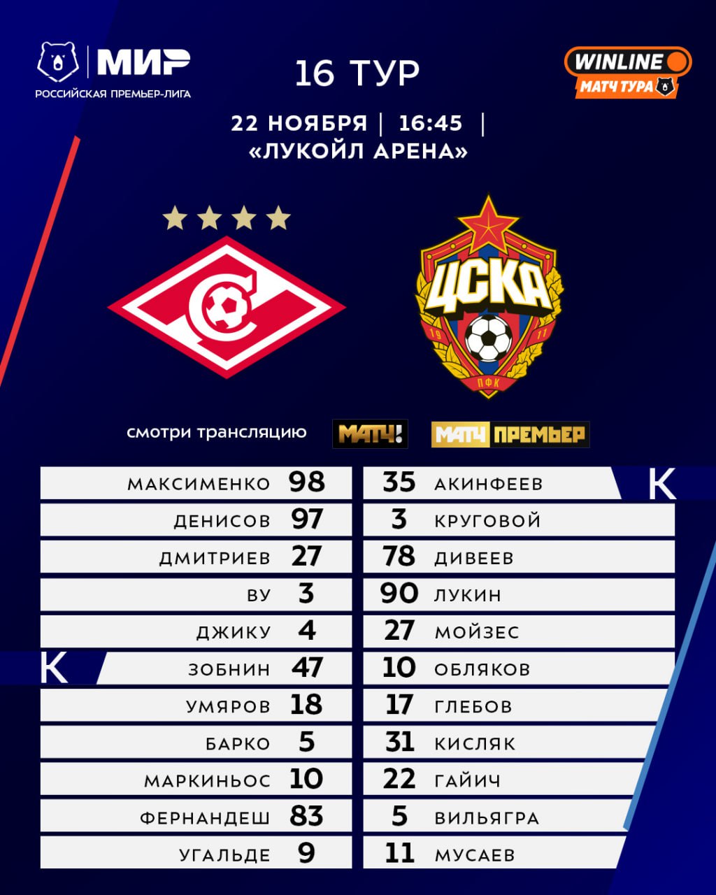 ![]() | https://t.me/premierliga/37108 Стартовые составы матча #КраснодарКрыльяСоветов #МирРПЛ |