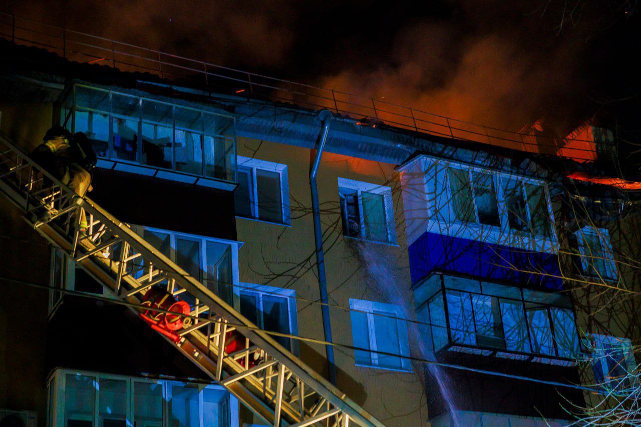 Самый крупный пожар последних лет произошел в жилом доме Оренбурга. На проезде Больничном всю ночь тушили пятиэтажное здание. Эвакуированы 220 жильцов.