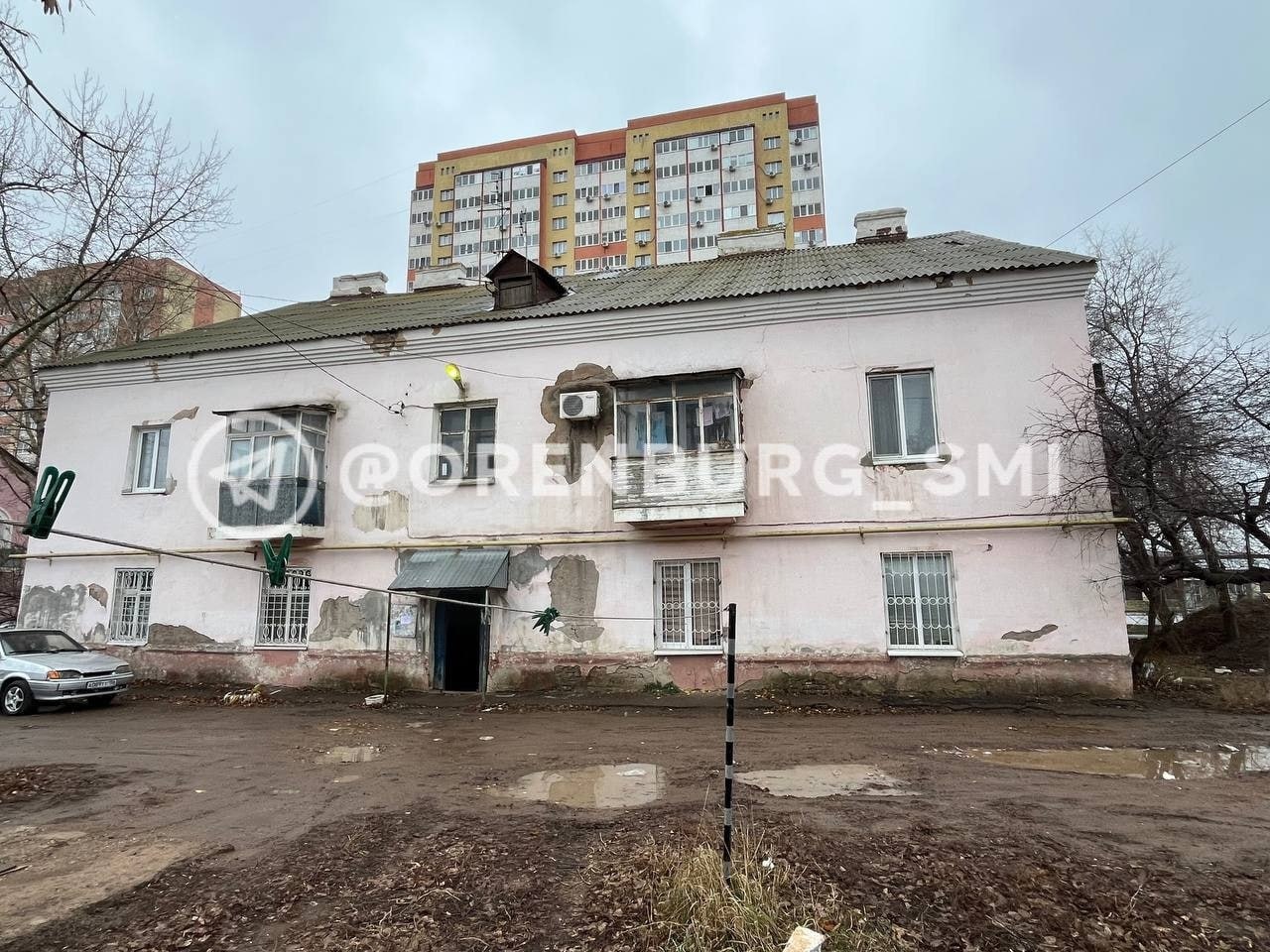 Стройка у торца дома, начавшаяся в 2025 году, добавила трещин и разрушений. Периодически пропадают свет и вода. Люди говорят, что обращались в администрацию и прокуратуру, но реакции нет.