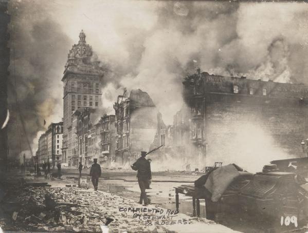 Улица в Сан - Франциско после мощного землетрясения, 1906 год.