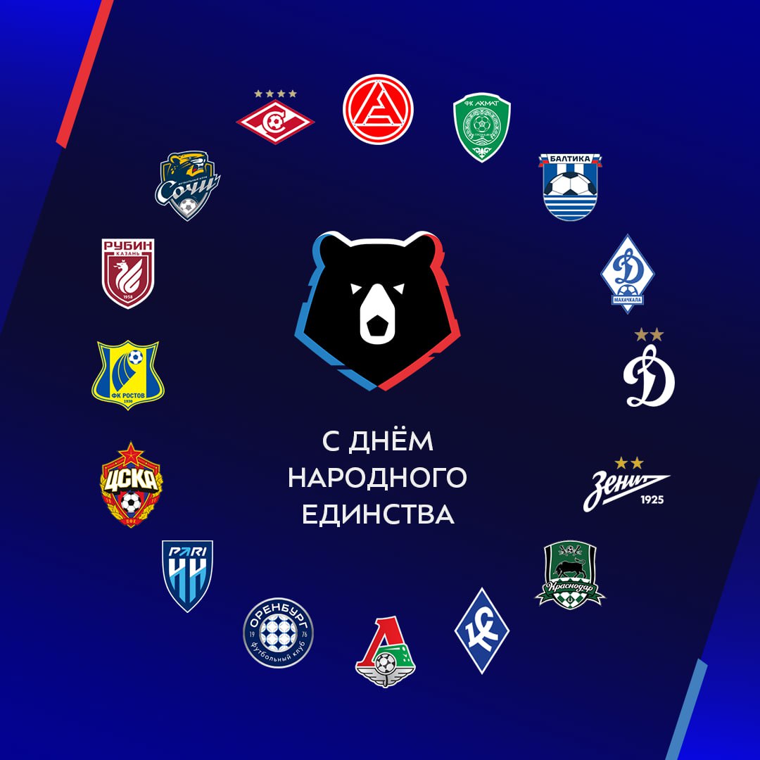![]() | https://t.me/premierliga/36558 **С Днём народного единства, уважаемые подписчики ****#МирРПЛ****! 🇷🇺** Российская Премьер-Лига за время своего существования объединяла клубы из самых разных уголков страны — от Владивостока до Калининграда, от Махачкалы до Санкт-Петербурга. Пусть |