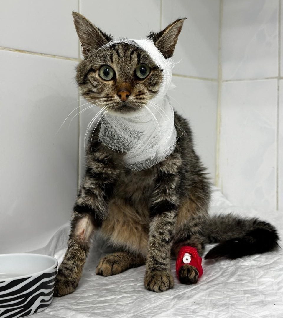 | NULL/6004 **Этого кота зовут Серджио, и у него оскальпирована голова и шея. ** Что случилось с этим ласковым бродячим котом - неизвестно, но однажды он пришёл к месту кормления с огромной раной, переползающей с шеи на затылок. Серджио ходил так больше 2 |