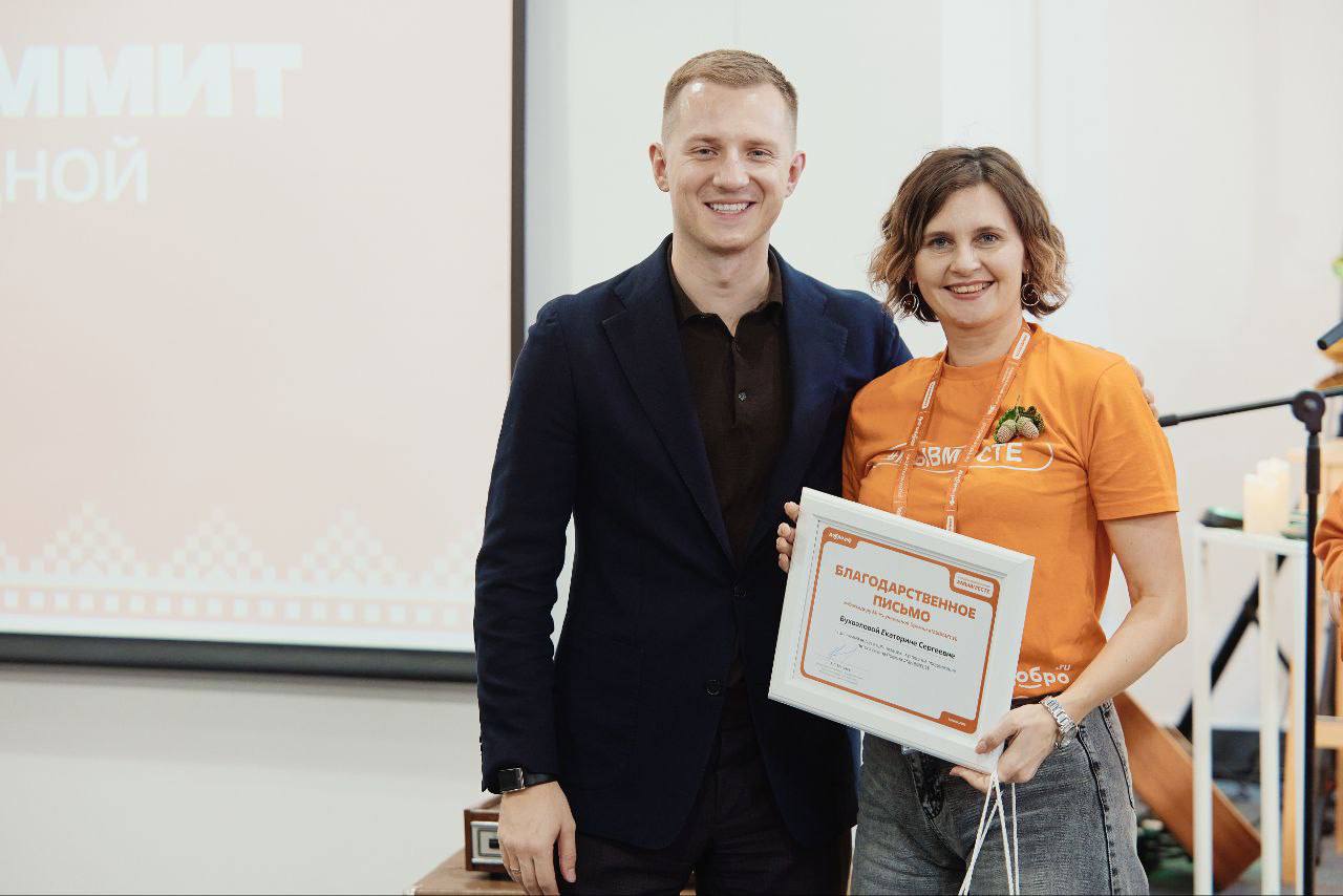Также в рамках форума прошла церемония награждения Международной премии #МыВместе. Специалист Добро.Центра «Волонтеры культуры» на базе Оренбургского областного колледжа культуры и искусств Екатерина Бухвалова вошла в число 20 лучших амбассадоров премии. Награду ей вручил председатель комитета Госдумы по молодёжной политике, руководитель Ассоциации «ДОБРО.РФ» Артём Метелев.