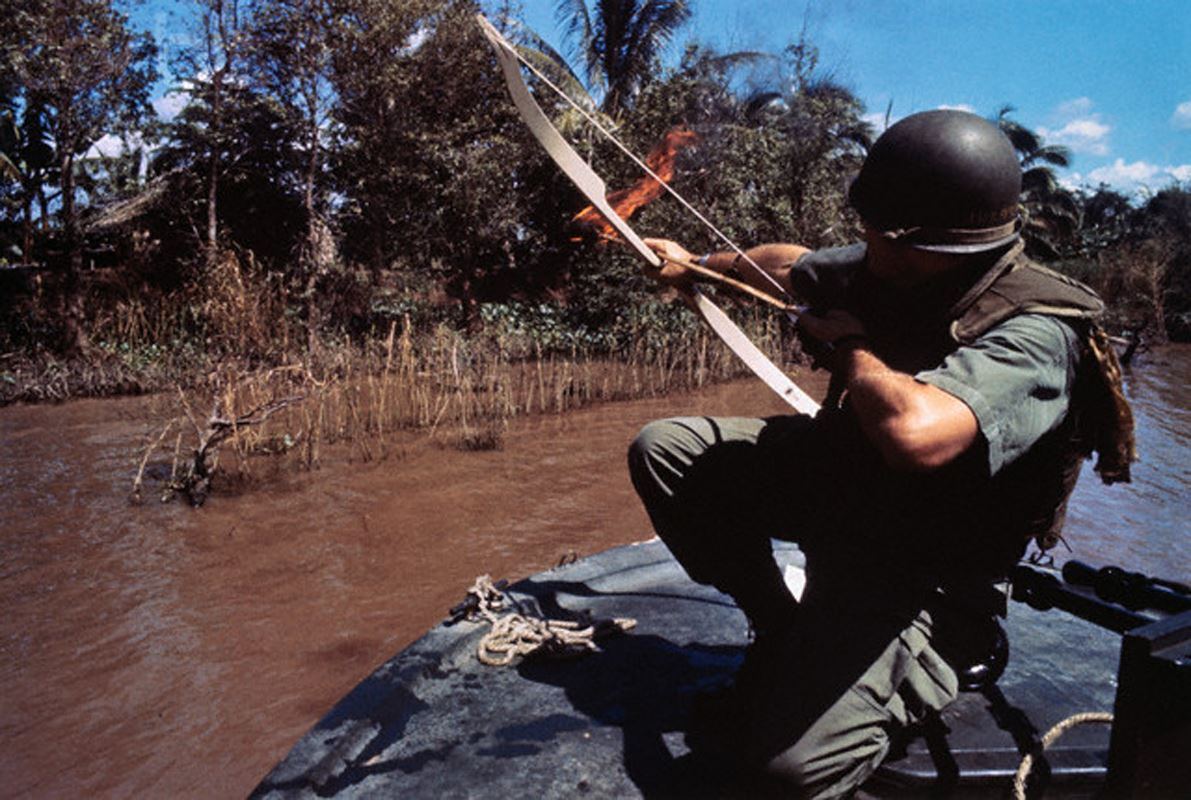 ![]() | NULL/14916 Лейтенант ВМФ США пускает горящую стрелу в хижину, которая скрывает бункер Вьетконга, Южный Вьетнам, 8 декабря 1967 года. [**Архив**](https://t.me/+lEAN4M0F2ARiZGYy) [👈](https://t.me/+lEAN4M0F2ARiZGYy) |