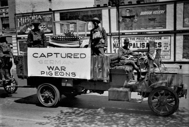 ![]() | NULL/12611 Фотография с парада в Нью-Йорке в честь окончания Первой мировой войны: перед зрителями проезжает автомобиль с пленными немецкими почтовыми голубями. 1918 год. |