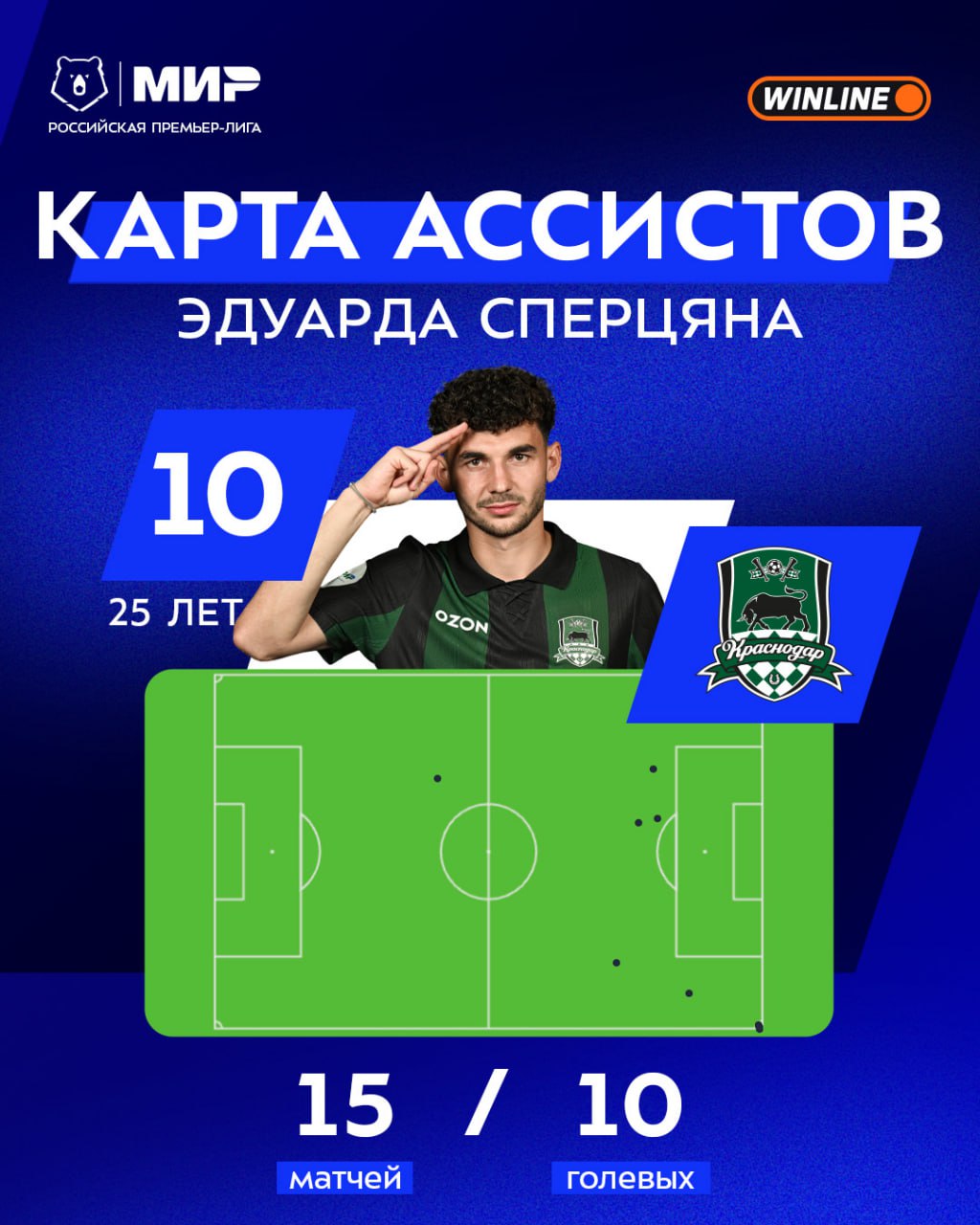 ![]() | https://t.me/premierliga/36831 **Эдуард Сперцян** — безоговорочный лидер гонки ассистентов: Эдо отдал 10 ассистов в 15 матчах, а особенно опасны в его исполнении угловые, четыре из которых стали голами 💪 #МирРПЛ |