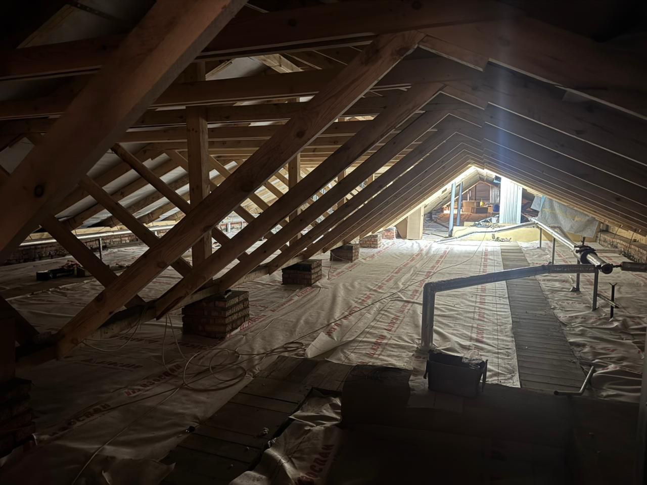 Рабочие демонтировали обгоревшие части кровли, построили конструктив крыши, провели обработку огнебиозащитой покрыли профлистом, выполнили ее теплоизоляцию, установили трубу магистрального отопления, карнизы, вентканалы, отремонтировали обгоревшую часть фасада, в подъездах сделали ремонт.