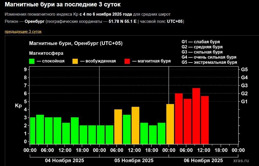 | https://t.me/orenburg_tg/59898 По Оренбургу ударила мощная магнитная буря Длится это с трёх часов ночи. Индекс геомагнитной активности достиг уровня от G2 до G3. И продлится буря как минимум до шести часов вечера |